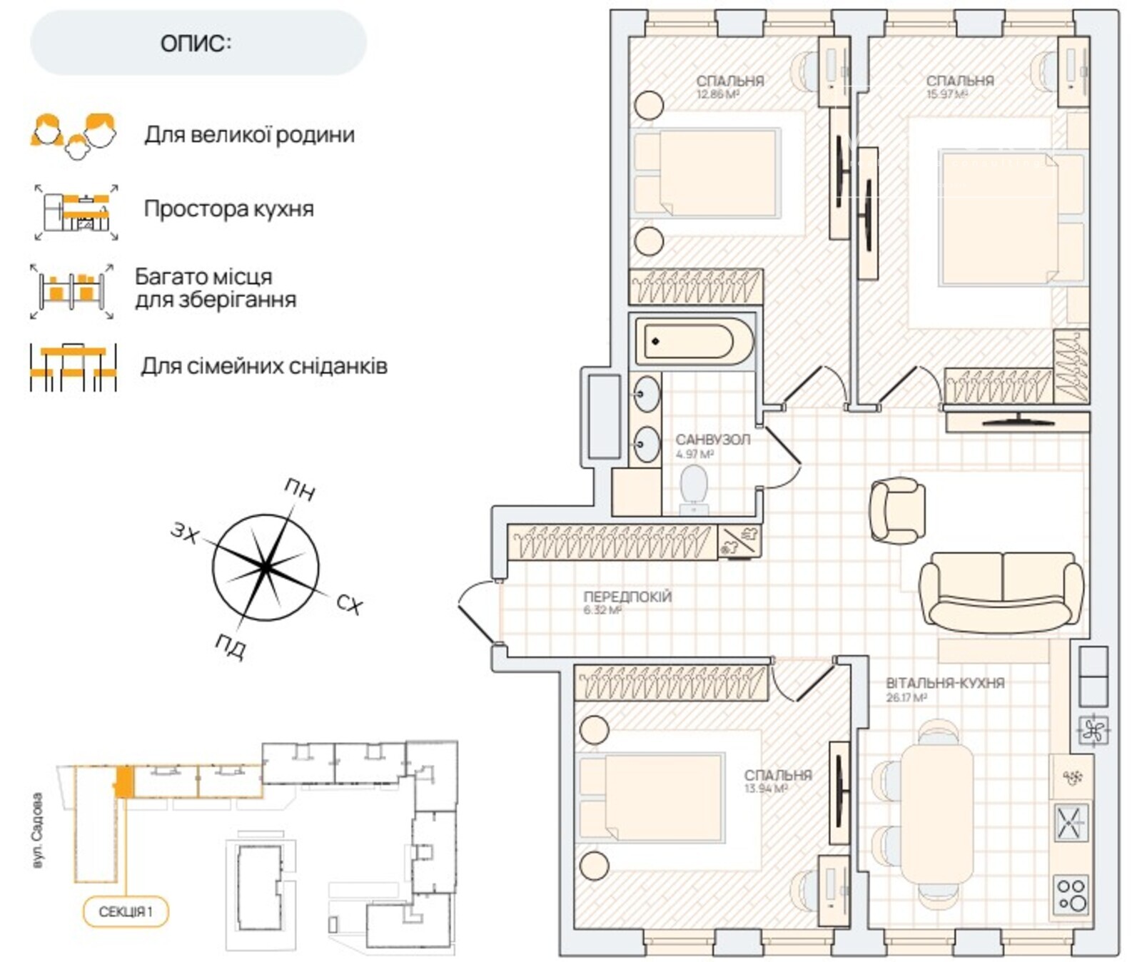 Поруч є школа, дитячий садок, супермаркети та станція метро. А тутешній парк стане улюбленим місцем піших прогулянок. ЖК Smart City – це не лише місце твоєї оселі. Тут ти матимеш можливість поплескатись з друзями та родиною у власному басейні житлового комплексу. А також відпочити та оздоровитись у місцевій бані. Тут ти не витрачатимеш час на відстані. Спортзал, коворкінг, комерційні приміщення на першому поверсі, дитячий майданчик та навіть облаштована дитяча кімната – все в одному місці – просто у твоєму будинку. Бо наша задача тут – створити всі умови для твого комфортного життя з твоїм ритмом.